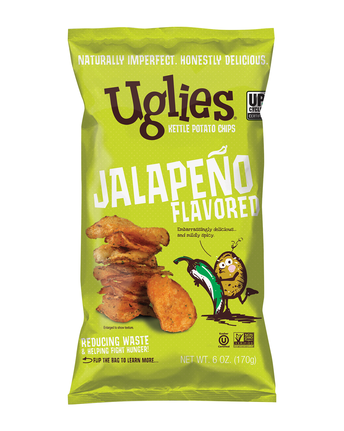 We bring el fuego with our zesty and delicious Uglies Jalapeño Kettle-Cooked Potato Chips. You won’t be able to get enough of the blazing flavor and we can’t get enough of reducing waste!